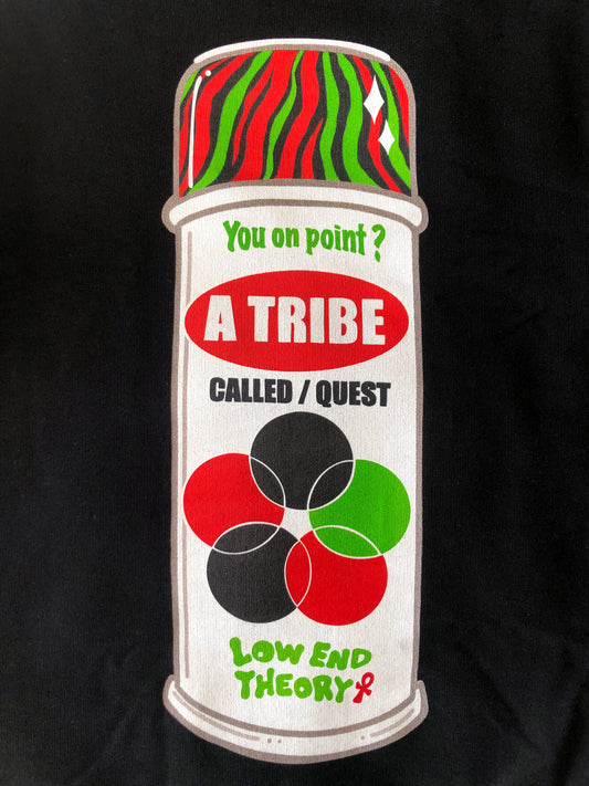 Rooted in an appreciation for the group's second album 'The Low End Theory'; this design is a visual twist on their trademark colours of red, black and green applied to the branding of the iconic Krylon spray can.